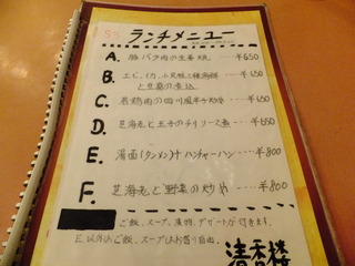 ●店舗名称:中華料理 清香楼 本館(中華料理)