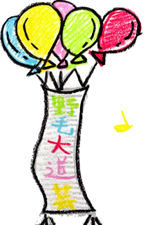 イラストや絵は全て近隣の子どもたちや、学生たちが書いてくれたものです。